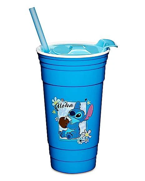 Stay hydrated with some help from your favorite animated character with this fun Stitch cup with straw! This cup has its own lid and straw and shows Stitch drinking from a coconut below the word “Aloha.” It’s the perfect party cup for any Lilo & Stitch fan.