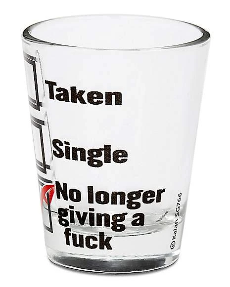 Everyone will know you no longer give a fuck and are ready to get your drink on with this Single or Taken Shot Glass. Once you take some shots with this hilarious glass you’ll forget about your relationship struggles in no time.